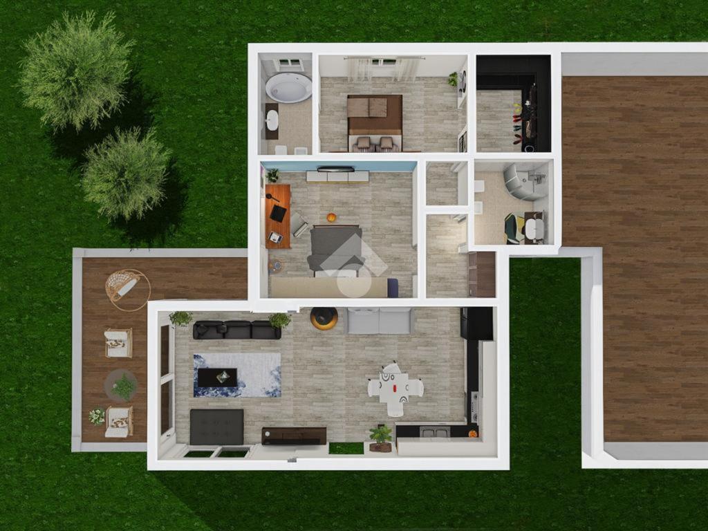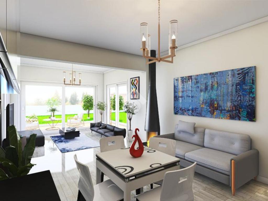 Gli ambienti interni, ampi ed illuminati sono studiati per garantire un elevato benessere abitativo e confort. La zona giorno si apre su un salone open space con cucina a vista, uno spazio accogliente e armonioso ideale per ricevere e vivere la casa in ogni momento. La zona notte comprende due camere da letto, di cui una con cabina armadio, oltre a doppi servizi realizzati con materiali di qualità. Completano la proprietà un elegante portico e un giardino privato, pensati per offrire privacy e relax, creando così una perfetta continuità tra spazi interni ed esterni.